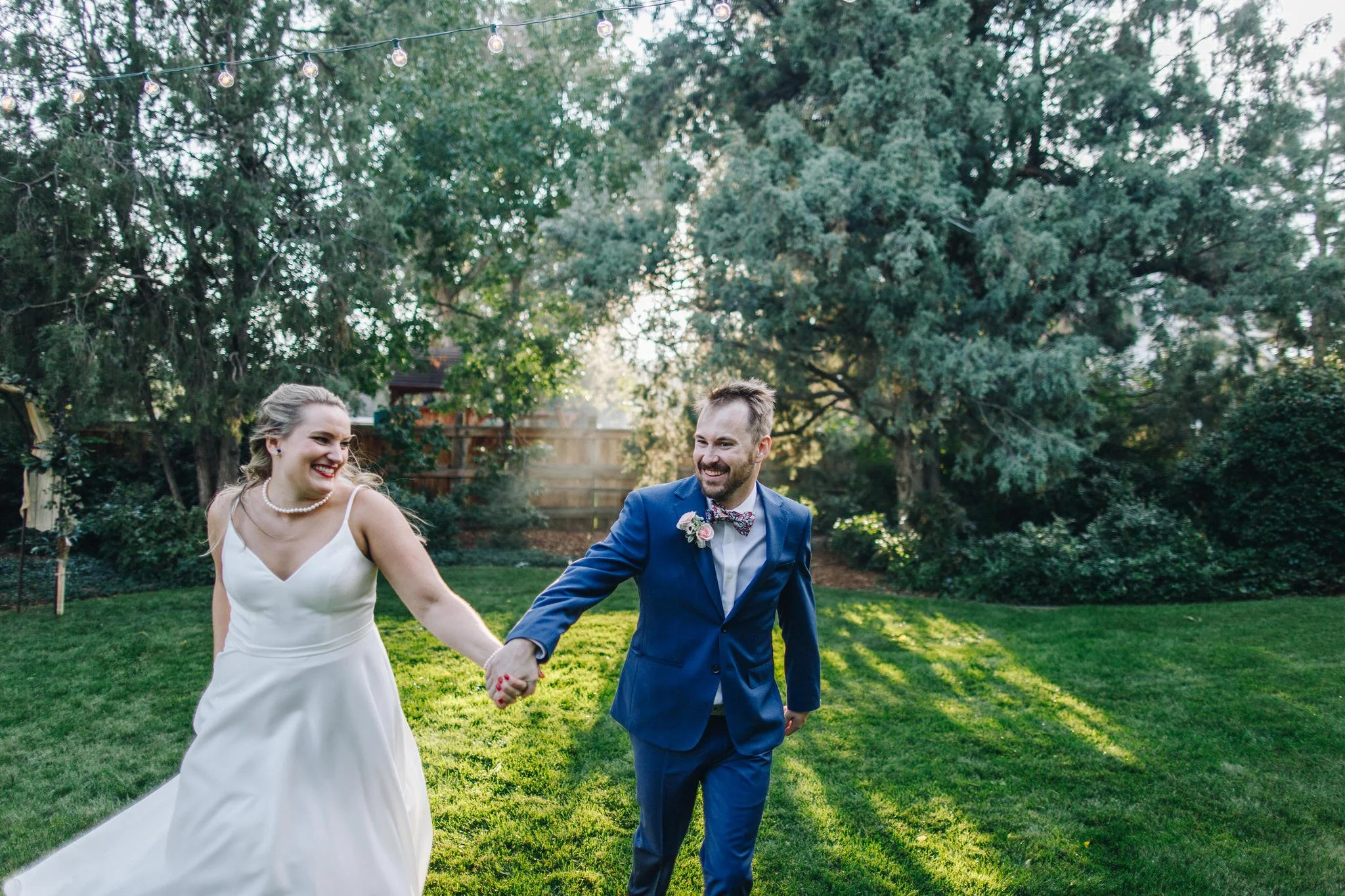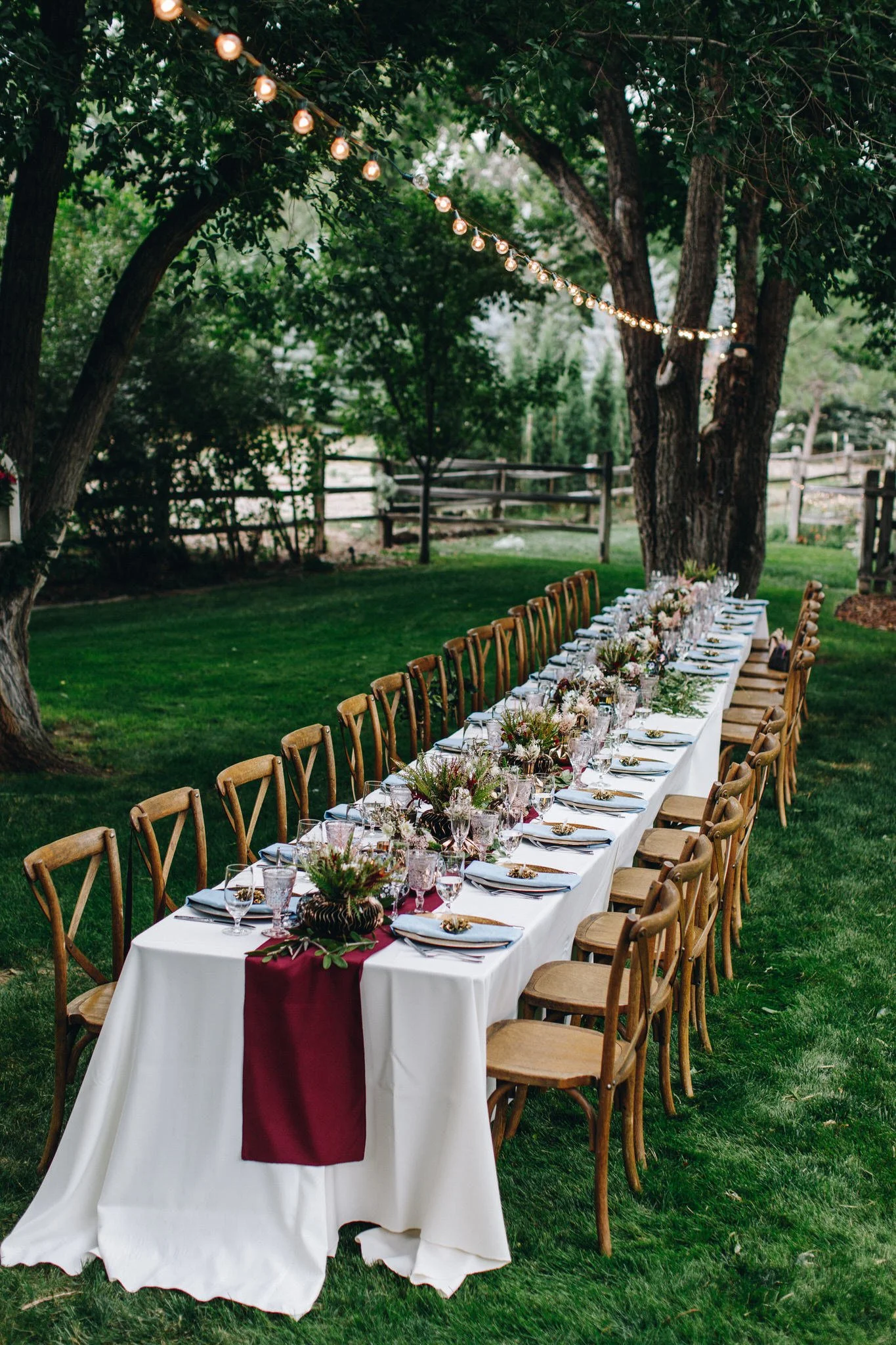 Mac and Erica had an elegant backyard wedding in Denver with an unbelievably beautiful dinner table by Eclectic Elegance by Lisa. The forecast was dry but the weather had other plans, and it rained for a bit during dinner. However, no spirits were dampened at the joy-filled and heartfelt event!