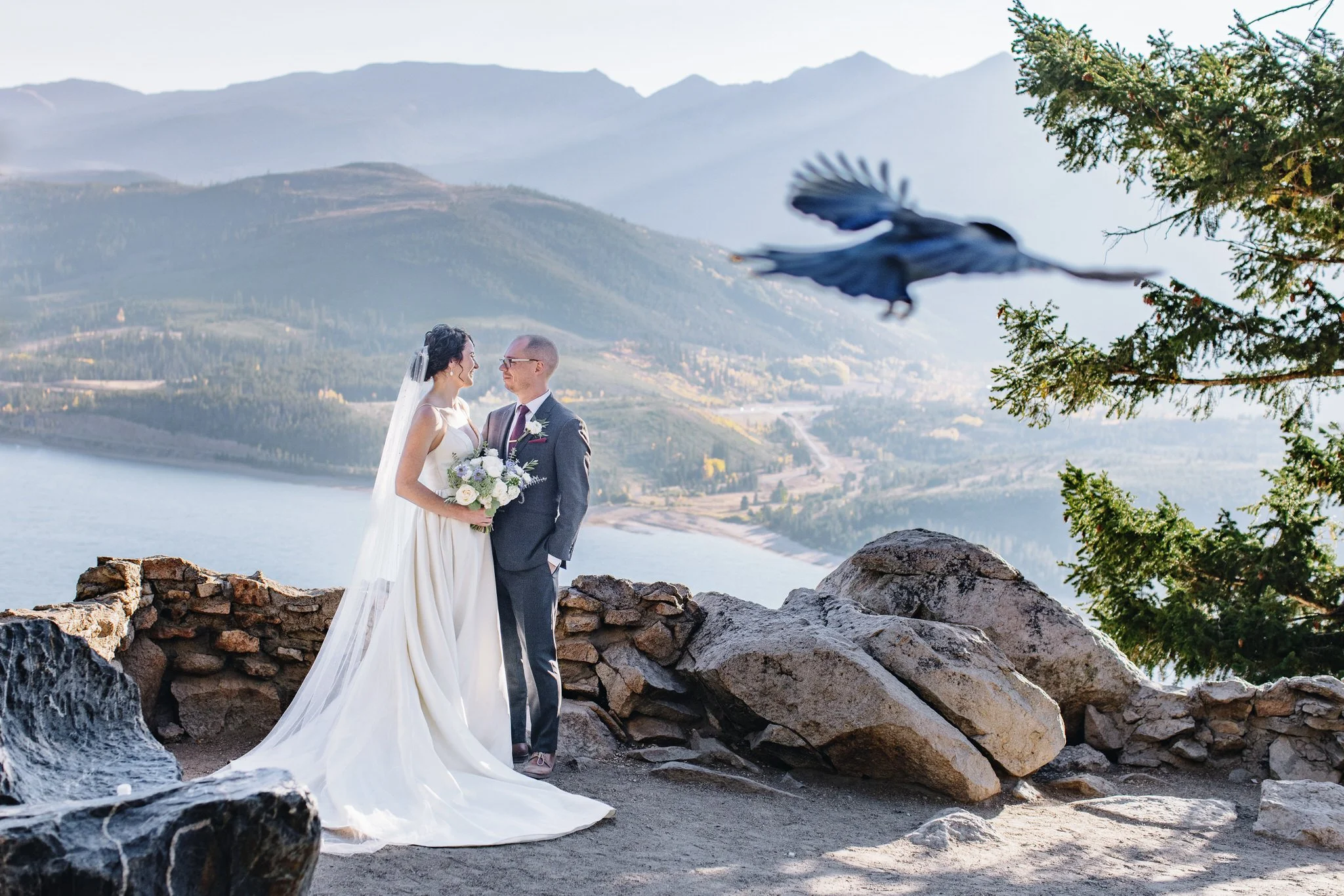 A blue jay swooped through during photos at Sapphire Point Overlook with Carly and Chris. They were married in the fall when the colors were peaking in Breckenridge, and it was absolutely beautiful.